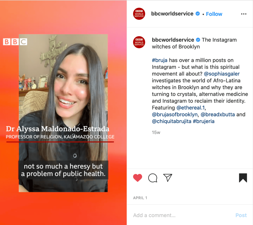 Featured expert in the BBC’s first Instagram documentary, from filmmaker and religion reporter Sophia Smith Galer.
