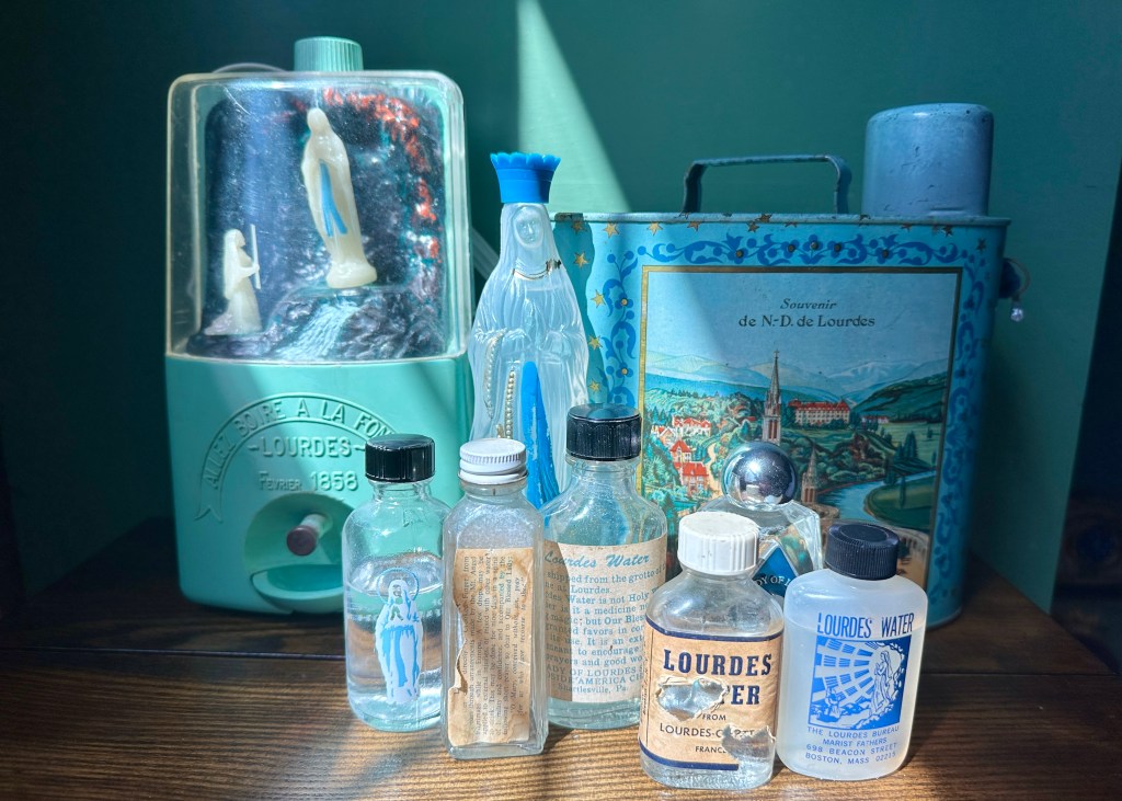 In this piece on collecting objects from the Sanctuary of Our Lady of Lourdes, I reflect on touch as research method and the possibilities of using religious objects in the classroom. Rosaries, canteens, postcards, lozenges, and bottles of miraculous water—my treasures are pretty mundane. And yet they are also part of the history and circulation of the miraculous. I grow my collection to develop a tactile pedagogy and allow students to explore “touch as a way of knowing.” The Lourdes teaching-collection allows students to engage their whole sensorium as a way of learning about religious history.